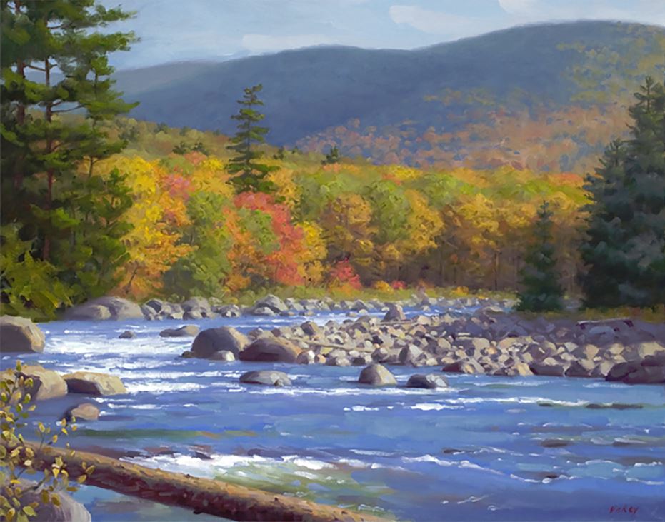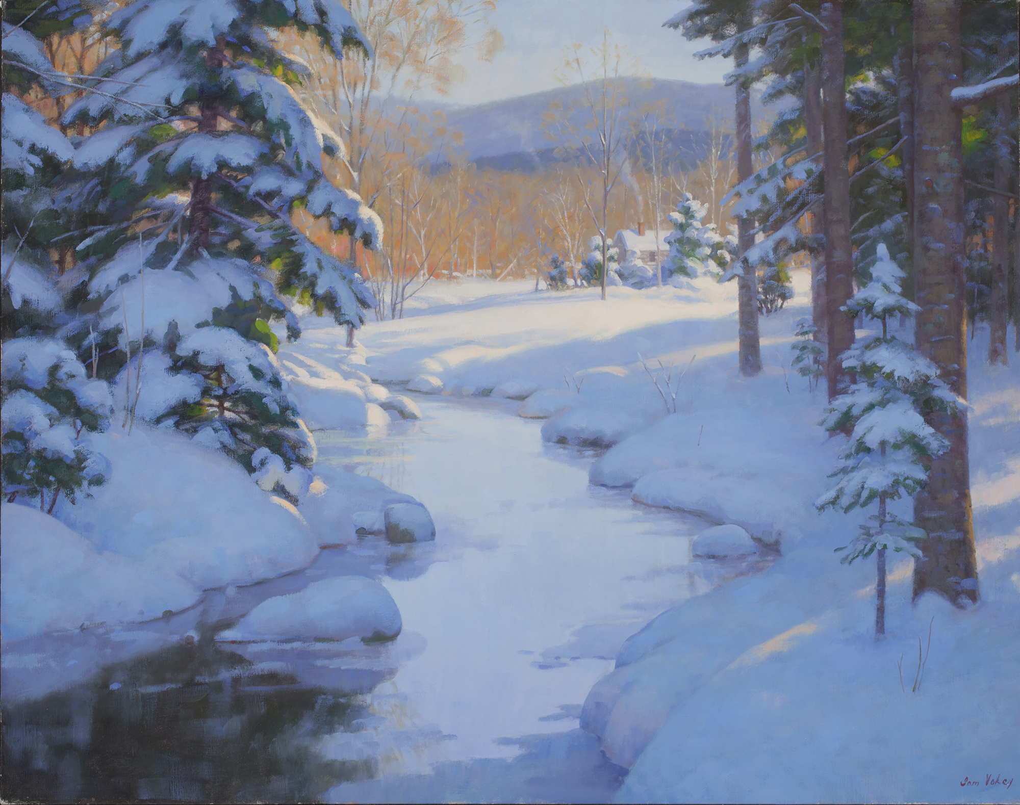 North Country Stream depicts a sunny day in late winter up in the White Mountains of New Hampshire.